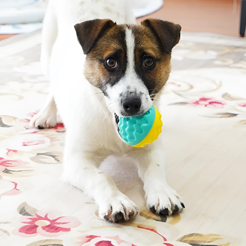Give your furry best friend the ultimate combo of fun, dental care, and mental stimulation with BounceBuddy – the squeaky, spiked chew ball that keeps dogs of all sizes happy, healthy, and engaged every time they play.