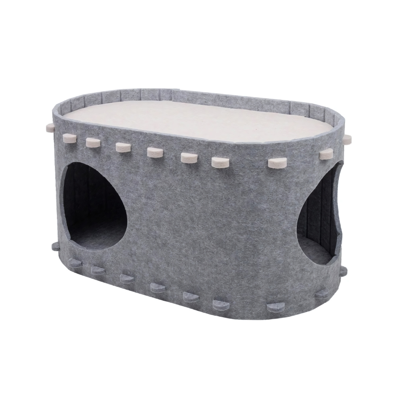 Elevate your furry friend's lifestyle with FelineNest, the ultimate felt bed that combines unparalleled comfort and engaging play, providing a cozy, secure haven for restful naps and exciting adventures, all while seamlessly fitting into your home's decor.