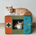 Transform your beloved cat's playtime into an enchanting adventure with KittyStation, a retro-inspired cardboard hideaway that doubles as a durable scratch surface, promising endless amusement and a cozy retreat for your furry friend's scratching, stretching, and lounging desires!
