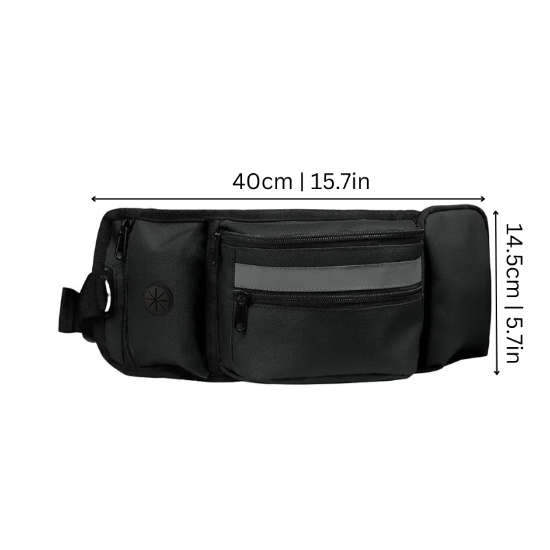 With the PoochPacer, you're always prepared. The main compartment is spacious enough to hold all your essentials — from dog treats and poop bags to water cups and your favorite toys. It's the perfect companion for those long walks or exciting jogs, ensuring you have everything you need right at your fingertips.
