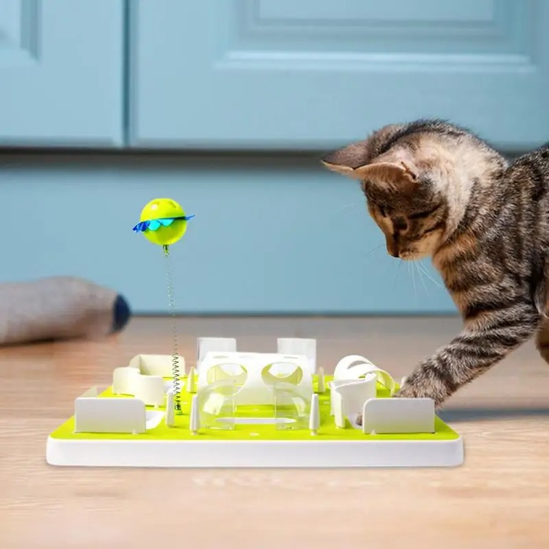 Elevate your cat's mealtime and playtime with PurrMaze, an innovative puzzle feeder that combines stimulating challenges, favorite toys, and adjustable difficulty to reduce boredom, promote healthy eating habits, and keep your feline friend entertained and lively.