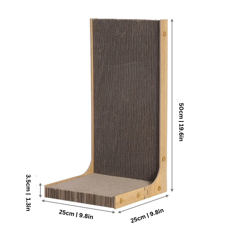 Experience the joy of your cat indulging in endless claw-sharpening sessions on our ScratchStand, the premium wood-edged scratcher masterfully crafted with a robust honeycomb core, ensuring not just wear and scratch resistance but a lasting bond between your beloved pet and its favorite retreat.