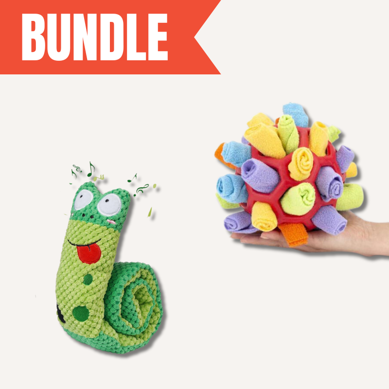 Prepare for wagging tails and playful leaps as you introduce your dog to the Sniff & Search Enrichment Set, a revolutionary bundle that doubles the fun and stimulation. Whether it's the fabric-tugging joy of Sniffle or the treat-discovery adventures with SnuffleSnake, your dog's world is about to become a whole lot more exciting.