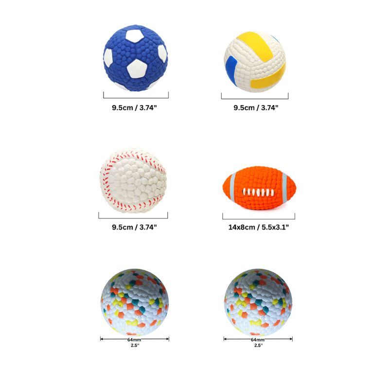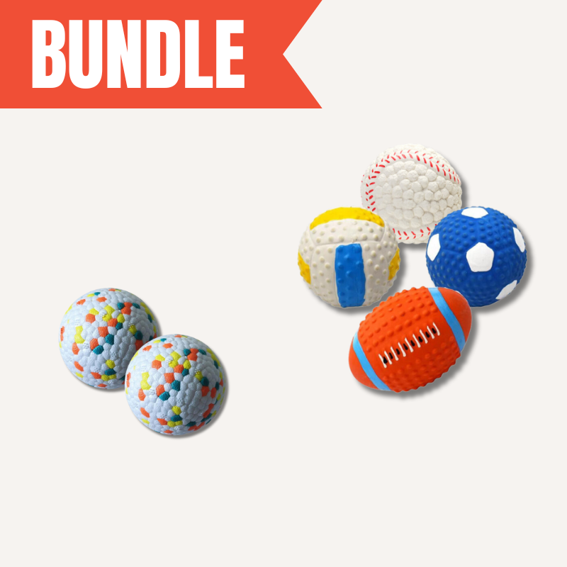 Step up your pet's playtime with a variety that's set to excite and endure. From the sports-themed chewballs to the mighty IndestructiBall, your dog is in for a treat that will withstand even the most passionate chewers. The array of shapes and textures offers a fascinating experience, keeping your dog entertained, physically active, and mentally stimulated. Say goodbye to frequent toy replacements; this bundle is built to last!